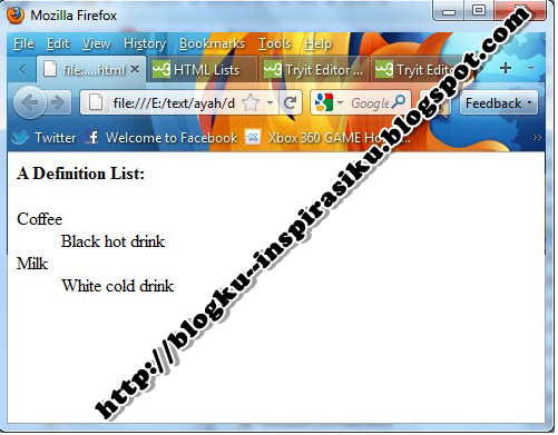 Definition List each item contains a pair# List item <li> ……….</li>